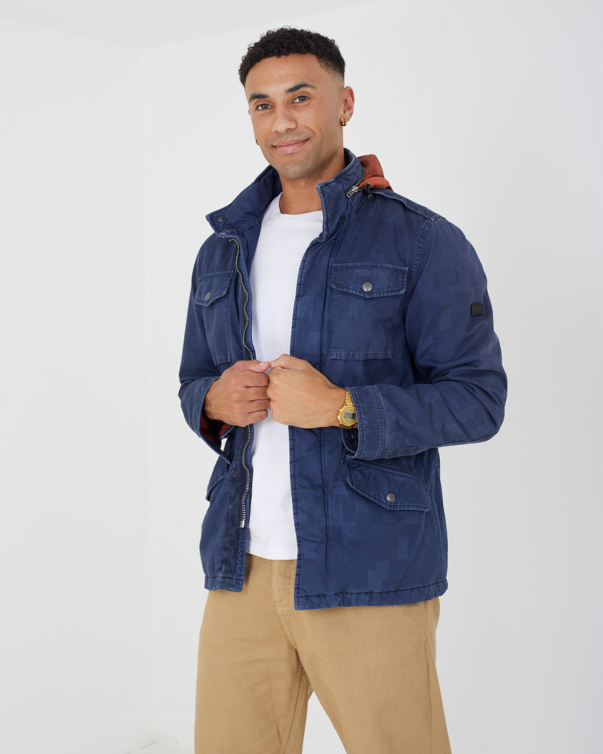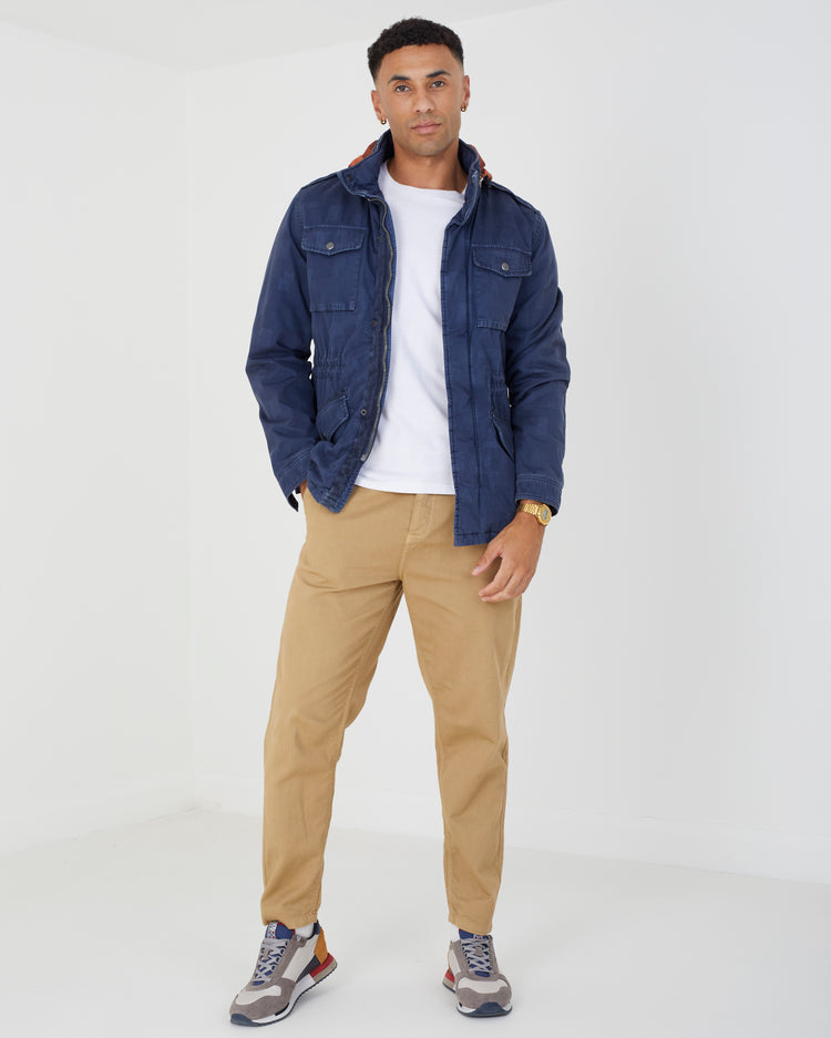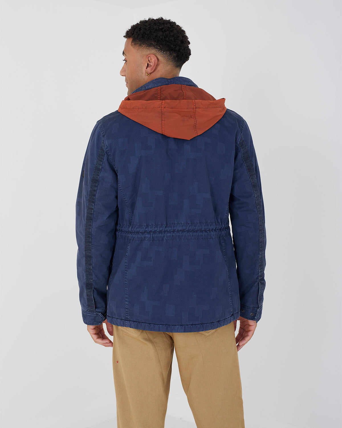 Cazadora con diseño masculino y combinación de cierre de cremallera y botones automáticos. Cuatro bolsillos convenientes con botones automáticos. Capucha interior con cremallera y cordón ajustador. ¡Elegante y cómoda!
