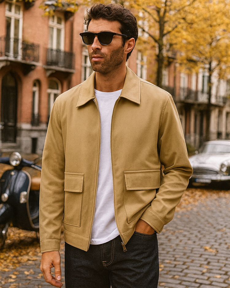 Chaqueta de hombre harrington, cierre con cremallera metálica y 2 bolsillos.