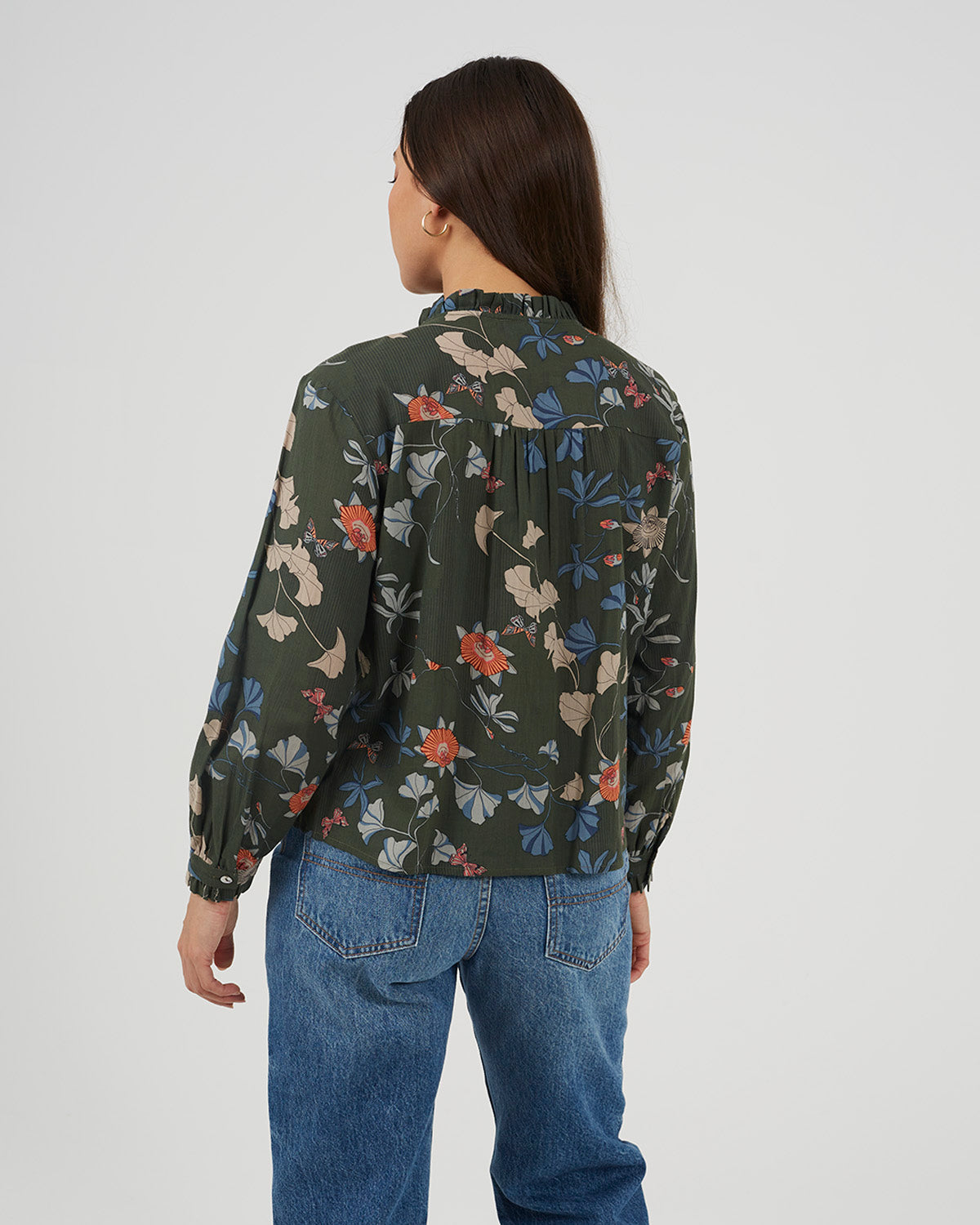 Camisa de mujer estampada de manga larga con cierre mediante botones