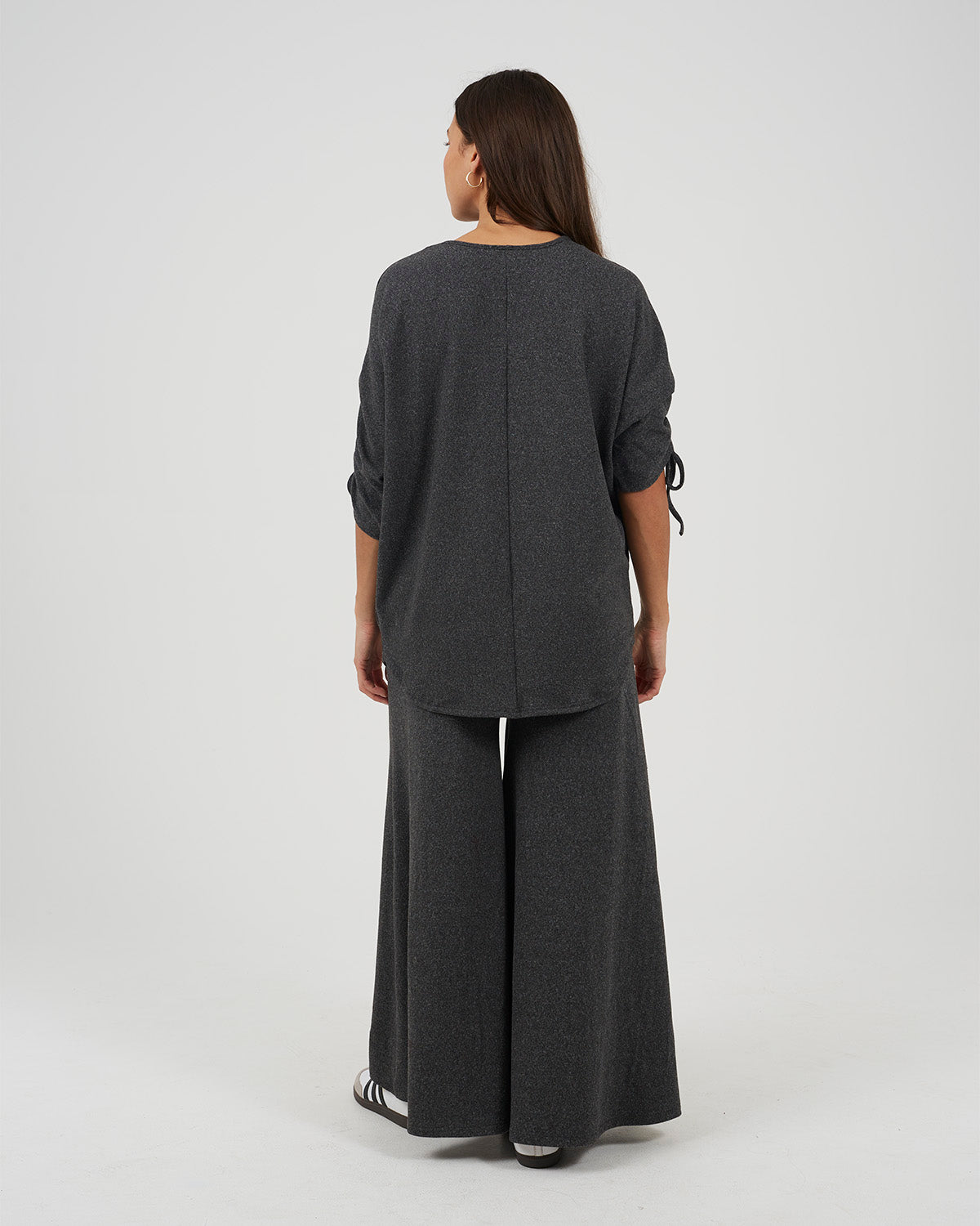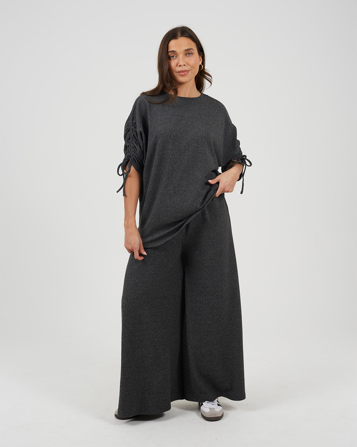 Pantalón de mujer de punto de pierna ancha y detalle de frunce de cintura.